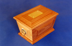 Mahogany Ashes CasketMoulded solid mahogany ashes casket. |
